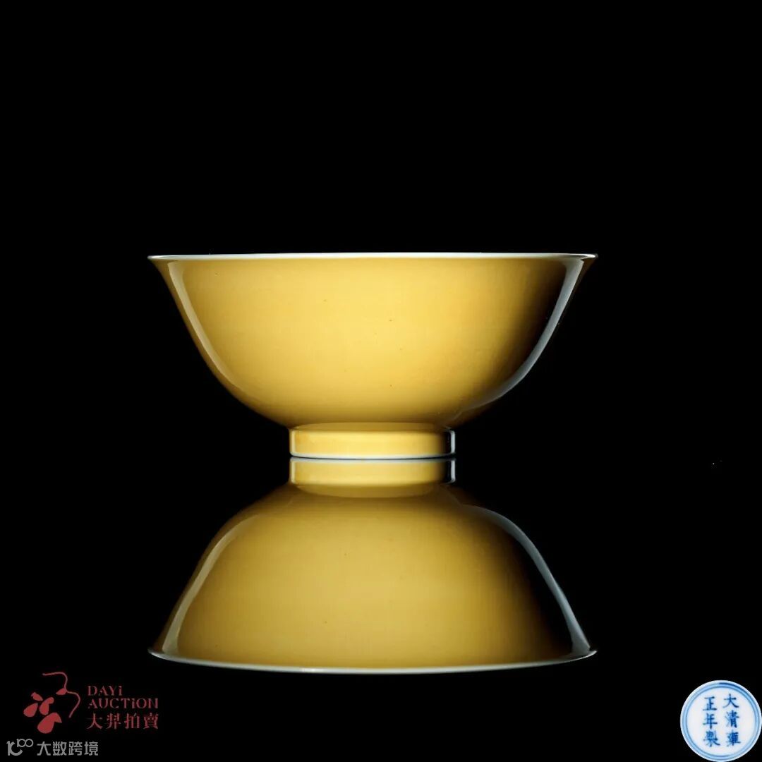任何对雍正御瓷的探讨,都必须从等级与稀缺开始。清雍正柠檬黄地锥拱绿彩云龙纹墩式碗一对便是这一价值的极致体现。其明艳的柠檬黄釉,在雍正十三年(1735 年)督陶官唐英撰写的《陶成纪事》中被明确称为“西洋黄色器皿”,这种以氧化锑为呈色剂的釉料配方,与传统以氧化铁为着色剂的浇黄釉截然不同,是当时御窑的创新成果。