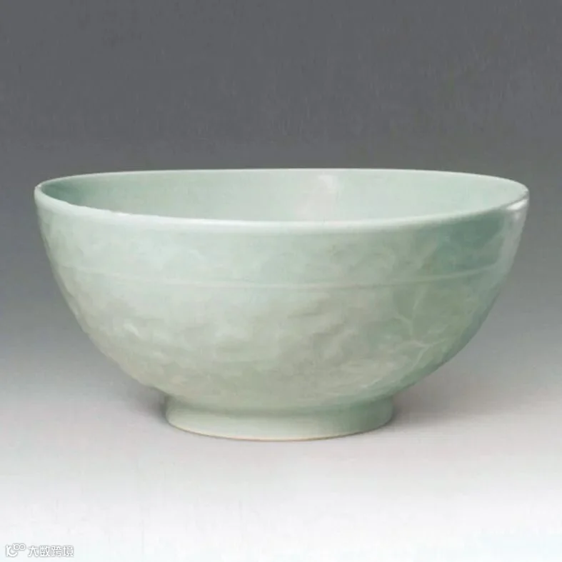 此件作品即为青釉器中的精品之作。拍品撇口,弧腹,圈足。造型秀美,修胎规整,全器内外满施粉青釉,釉面匀净光泽,釉汁肥腴,釉质细腻,光华内蕴,臻于纯美。外壁腹部模印一周缠枝花卉纹,纹饰清晰自然,布局繁而不乱,釉色随图案而深浅有致,富于动感,赏心悦目.