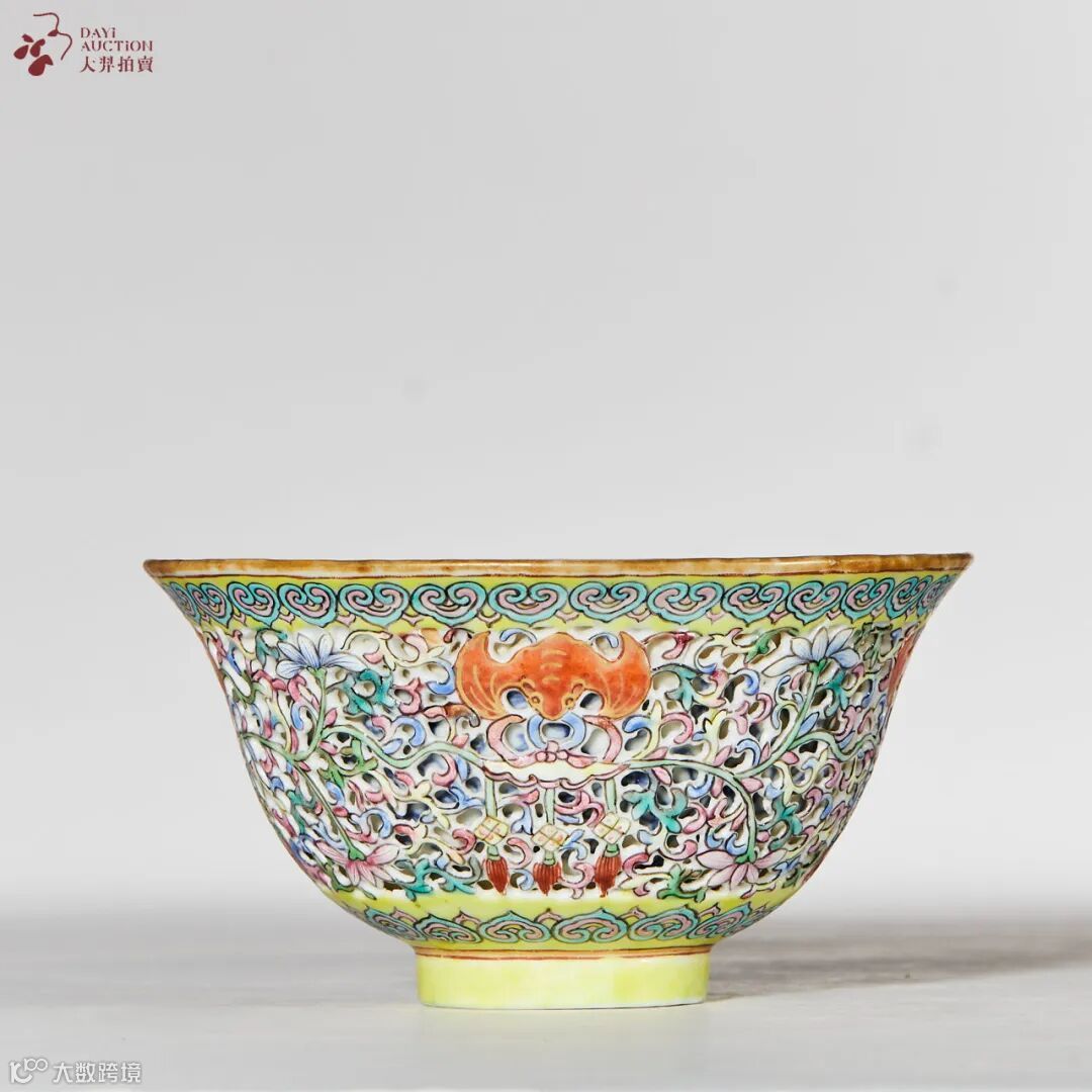 清嘉庆 粉彩缠枝莲托福庆有余纹镂空杯