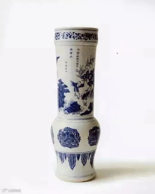 青花饲牛拜相图筒瓶