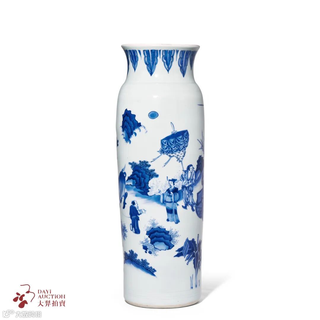 百里奚,姜姓,春秋虞国人,字子明,号五羖大夫。春秋时期著名政治家、思想家。饲牛拜相的故事是其于楚国养牛,被秦穆公听闻其才,欲重金赎回。秦国谋臣却说楚成王令其养牛,自然不知其才,重金恐变,不妨即以奴隶市价五张黑羊皮换之,故其号曰五羖大夫。使得百里奚终归秦国并拜相委以重任,成就一番事业。本品体量硕大,在同期作品中堪称翘楚,而且其青花发色极佳,为明代崇祯时期同类器物中的佼佼者,颇为贴合明末宋应星《天工开物.陶埏》中所云之“上品细料器”之特征,颇值珍视。