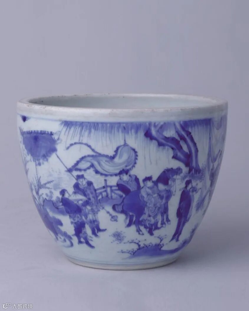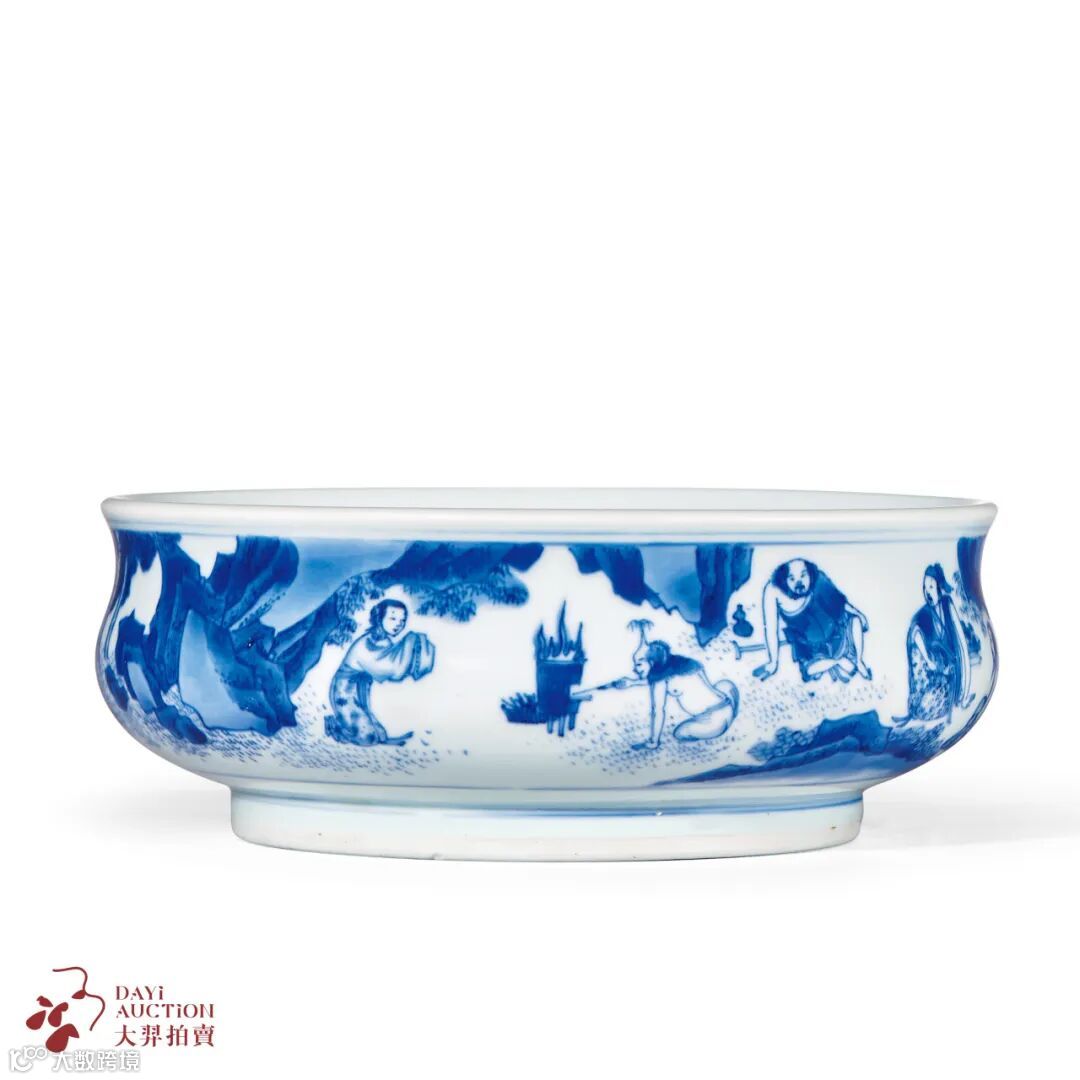 明崇祯 青花吕洞宾铁拐李故事图钵式洗