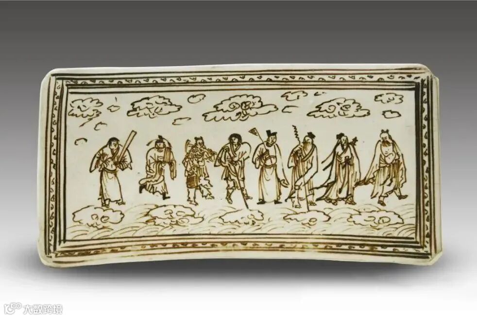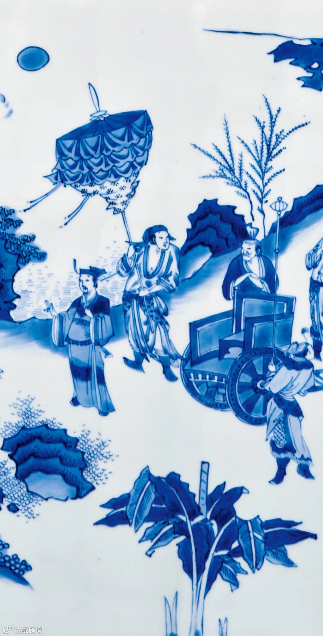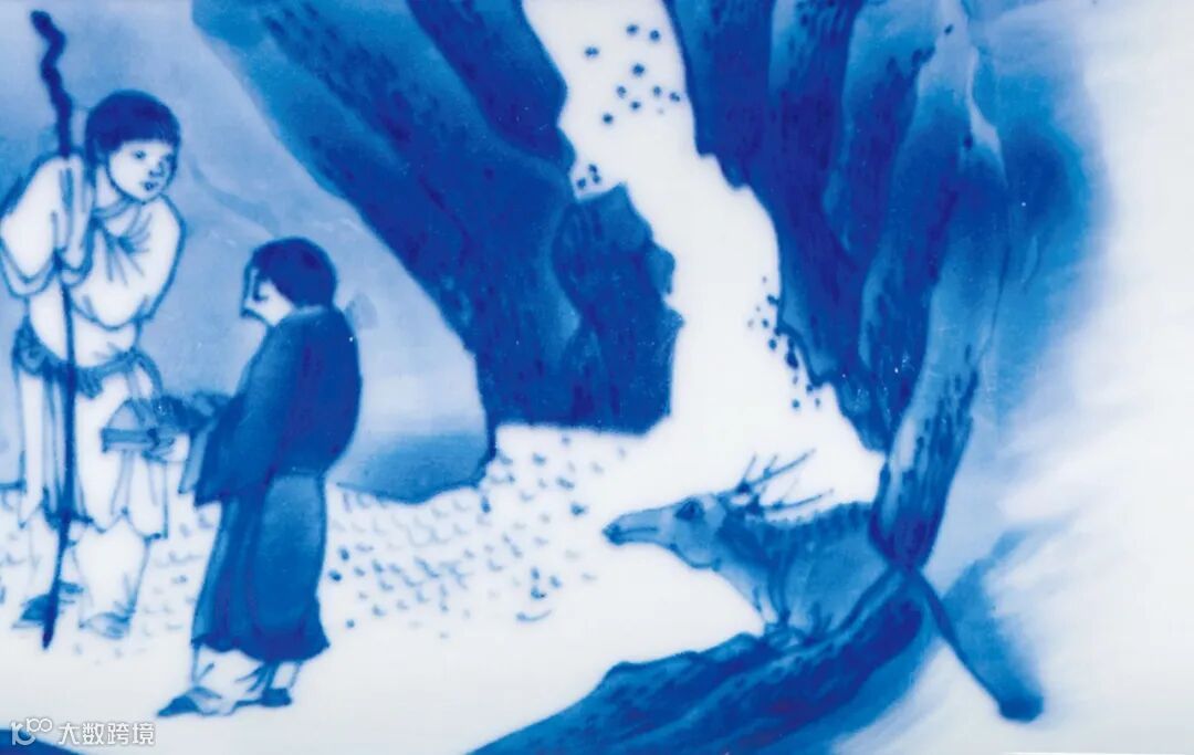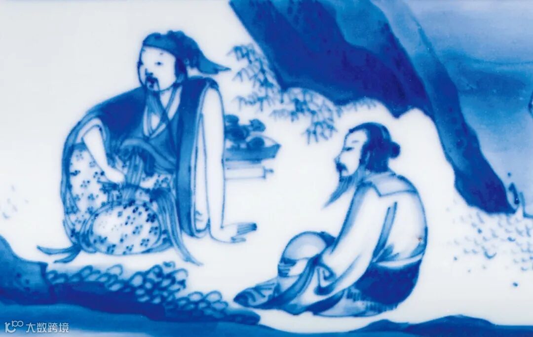访贤图是明末清初瓷器中颇为流行的瓷器装饰纹样,其内容无外乎有周文王访姜太公,武丁访傅说几类。其中最为常见的要数第一类,然而最易误读的要属本品所绘百里奚饲牛拜相人物故事。