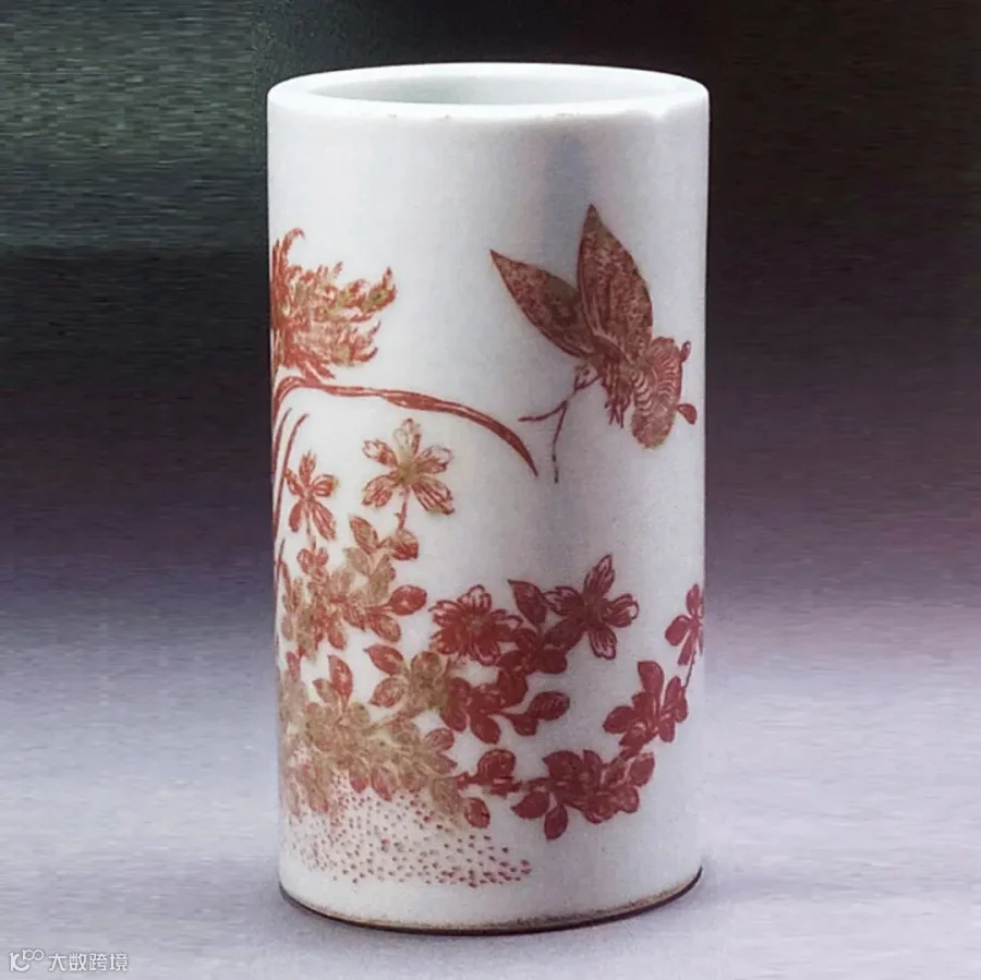 左:清道光 釉里红花蝶纹笔筒(明成馆藏)