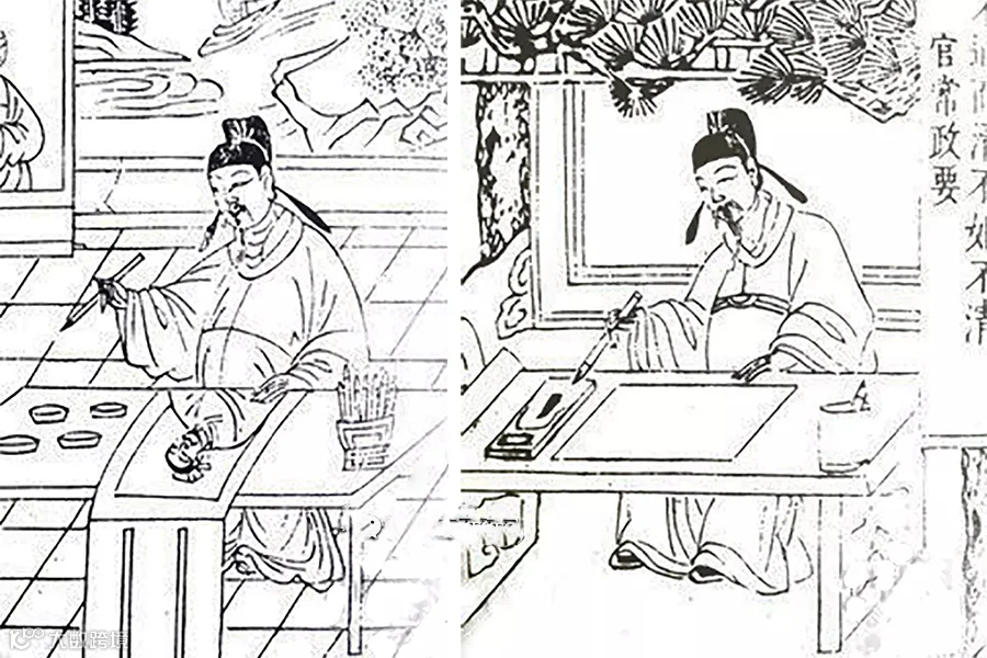 明万历年间的《三才图说》某章节有一图中,一位高士盘坐,其面前的几上明显有一只用作纳笔的笔筒。另,万历时期汤显祖《牡丹亭》、崇祯版《瑞世良英》等版画插图中均能见到束笔之笔筒,这些资料为笔筒考古提供了直接的画本图像依据。