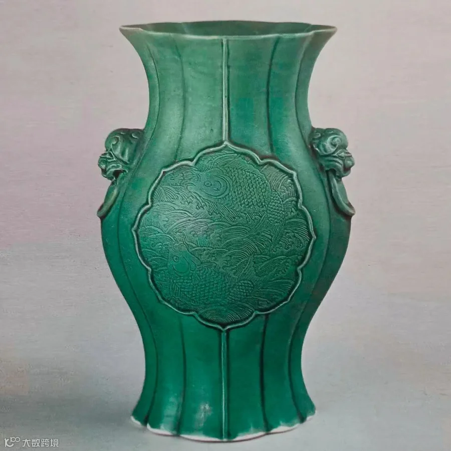 左:清光绪 绿釉鱼化龙纹铺首耳花口尊
