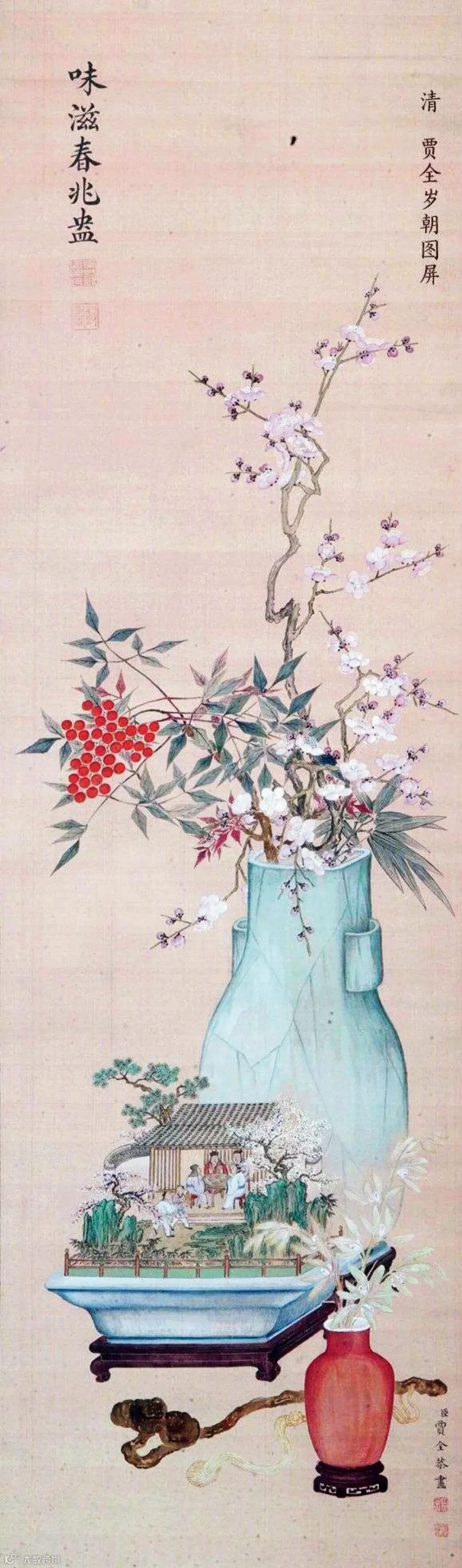 正所谓“雪满中庭,月满中庭,一炉松火暖腾腾。看罢医书,又看丹经。”此场景正是雍正帝在圆明园读书的画面,画中出现了不少的珍贵雅玩。如果少了这些器物,这张画的意境便大打折扣。