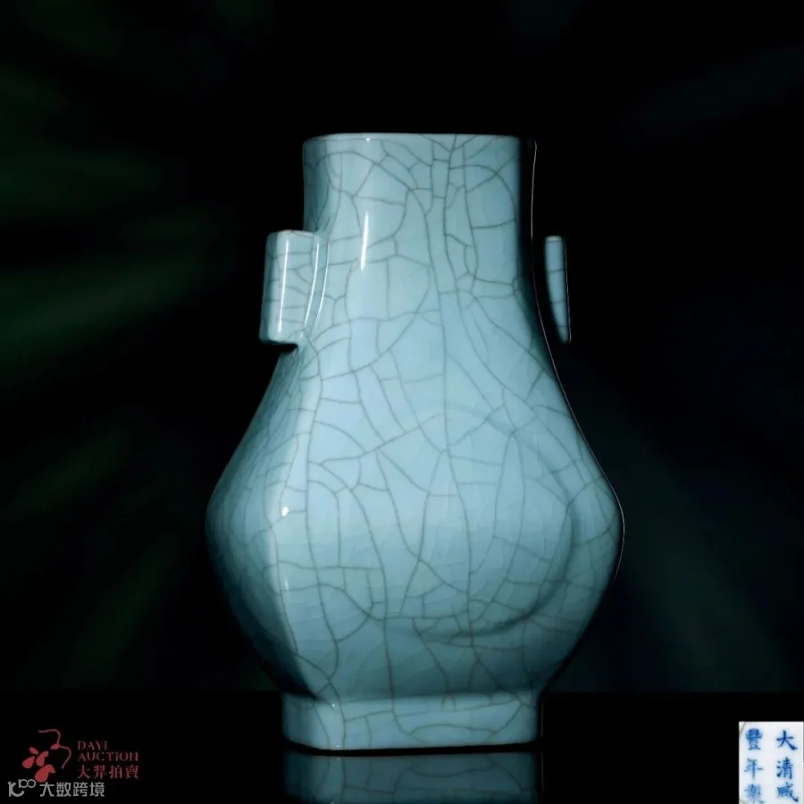 光绪朝时,四方杏元双管瓶较常见的釉色有窑变釉、仿哥釉、仿官釉、厂官釉、霁蓝釉、粉青釉等,其中仅前两者为大运琢器固定品种,粉青釉作品则传世量较少。