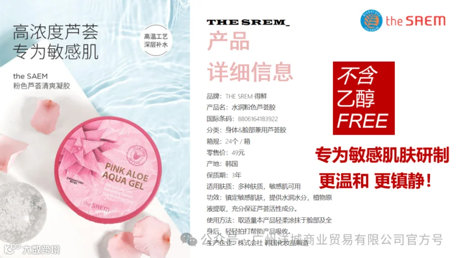 当前,得鲜济州鲜鲜芦荟胶及同系列商品得鲜敏感肌专研粉色芦荟胶全面落地中
