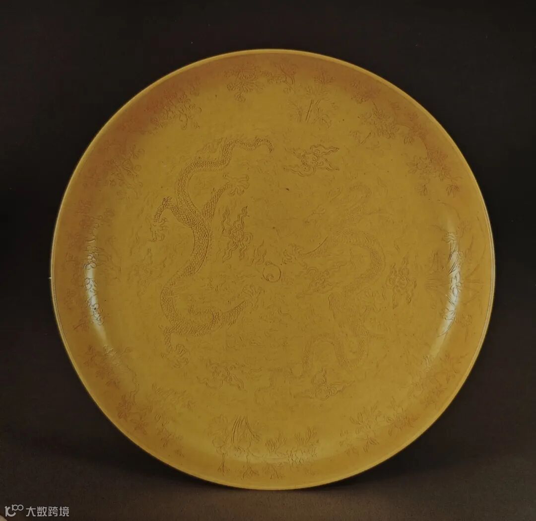 附图:台北故宫博物院藏 清雍正 黄釉暗刻云龙纹大盘