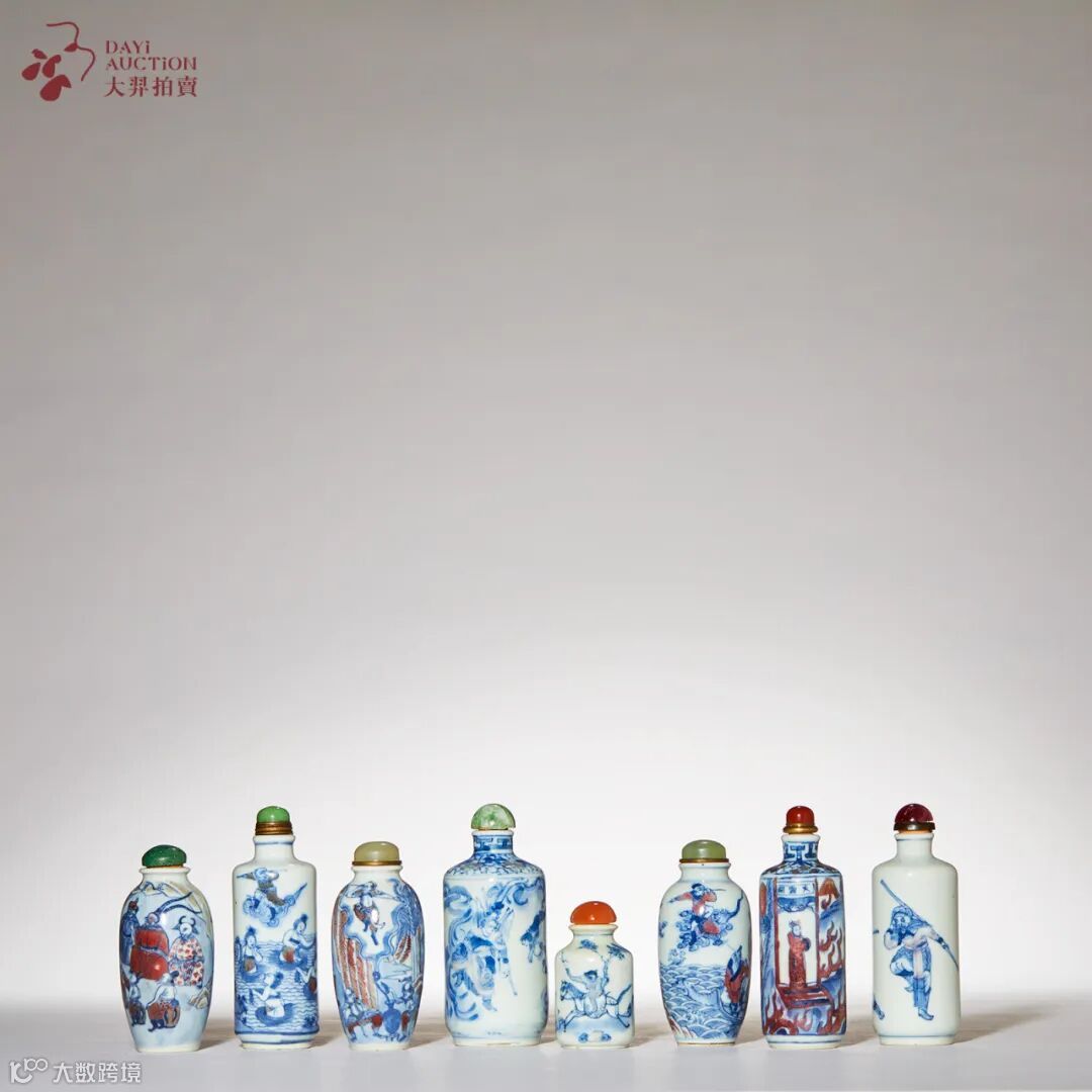 拍品为掌中乾坤佳作,以一组八只呈现,纹饰均以西游记故事为题材,整组器物以青花釉里红绘就,形制规整,绘画生动,胎釉精细,成组呈现,实属难得,可值珍视。