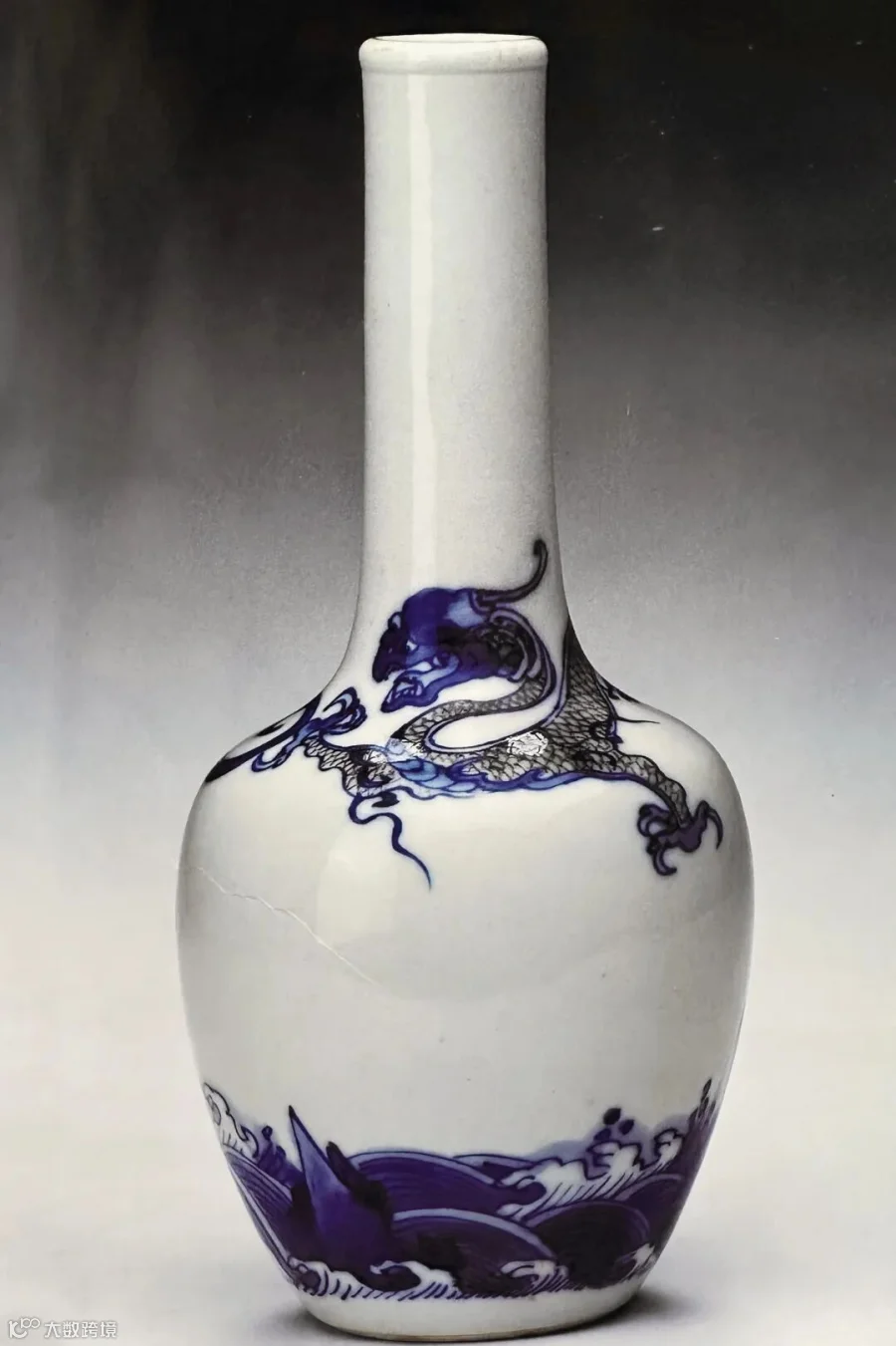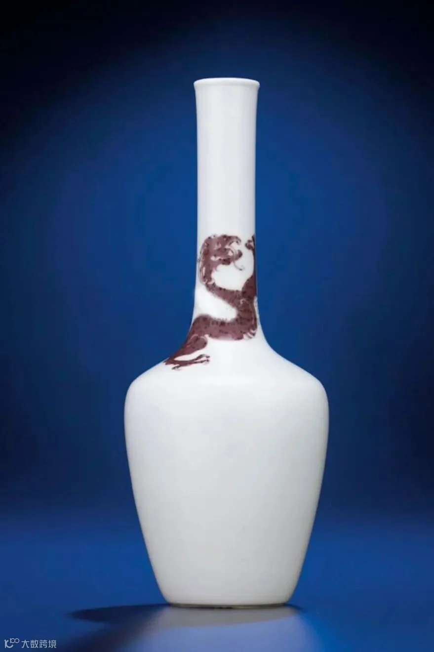 左:香港佳士得 2012 年 11 月28 日 编号 2117 清康熙 釉里红螭龙纹长颈瓶 成交價 253 萬