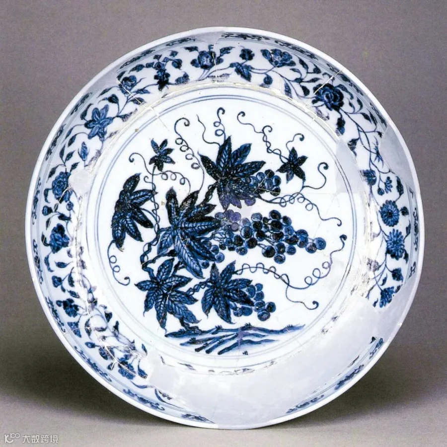 永乐青花葡萄纹大盘的文明交响