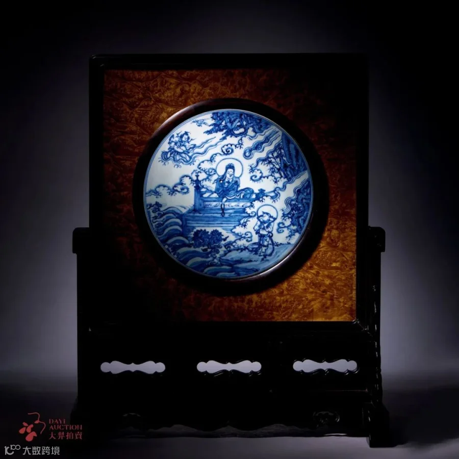 青花童子拜观音砚屏的梵音袅袅