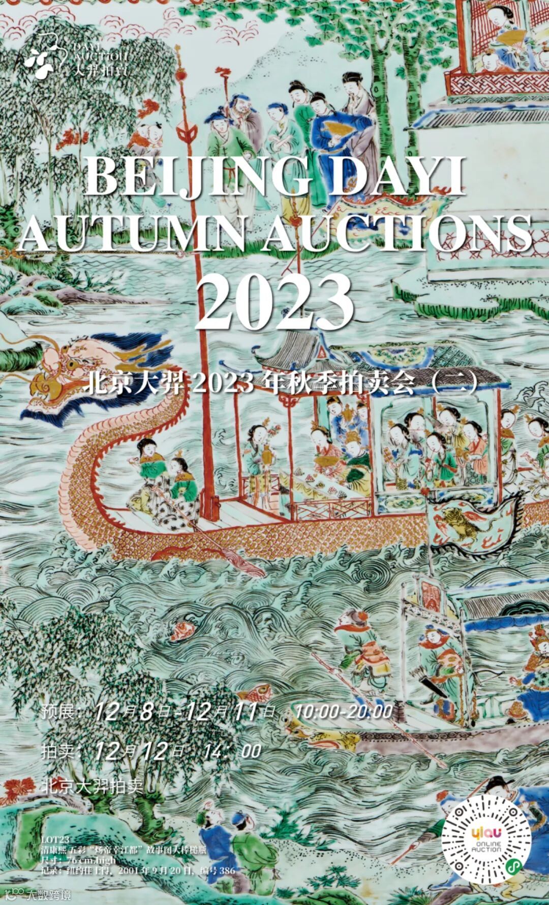 更多惊喜尽在冬日,北京大羿2023年秋季拍卖会已在日程,将于12月8日和各位见面,12月12日下午14点举槌拍卖。一场临界于历史和现实之间的对话,以惟妙惟肖、别具匠心的瓷器重新演绎着时代的沉淀,拍品精美,结构清晰,值得关注。