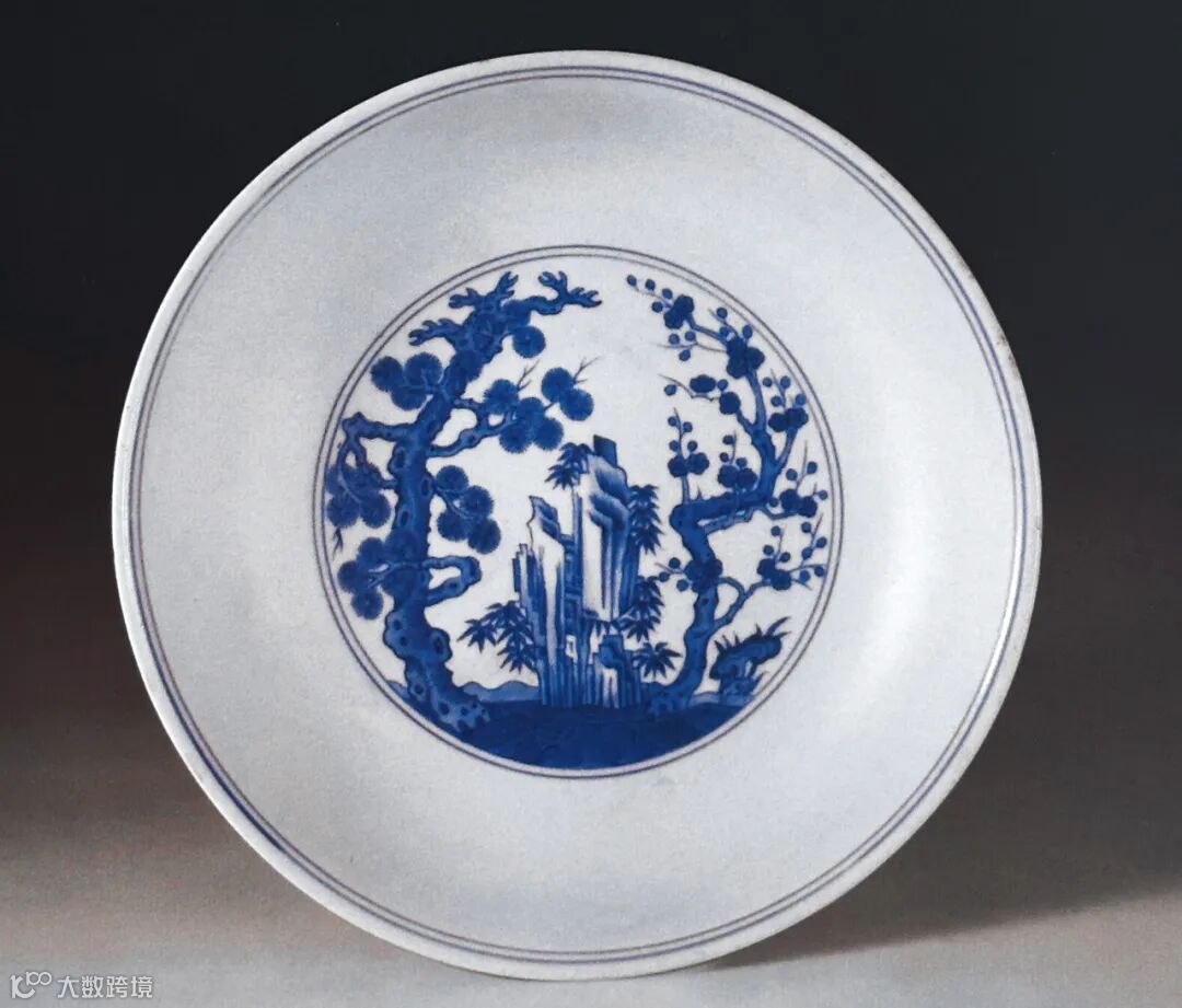 清乾隆 青花岁寒三友图盘