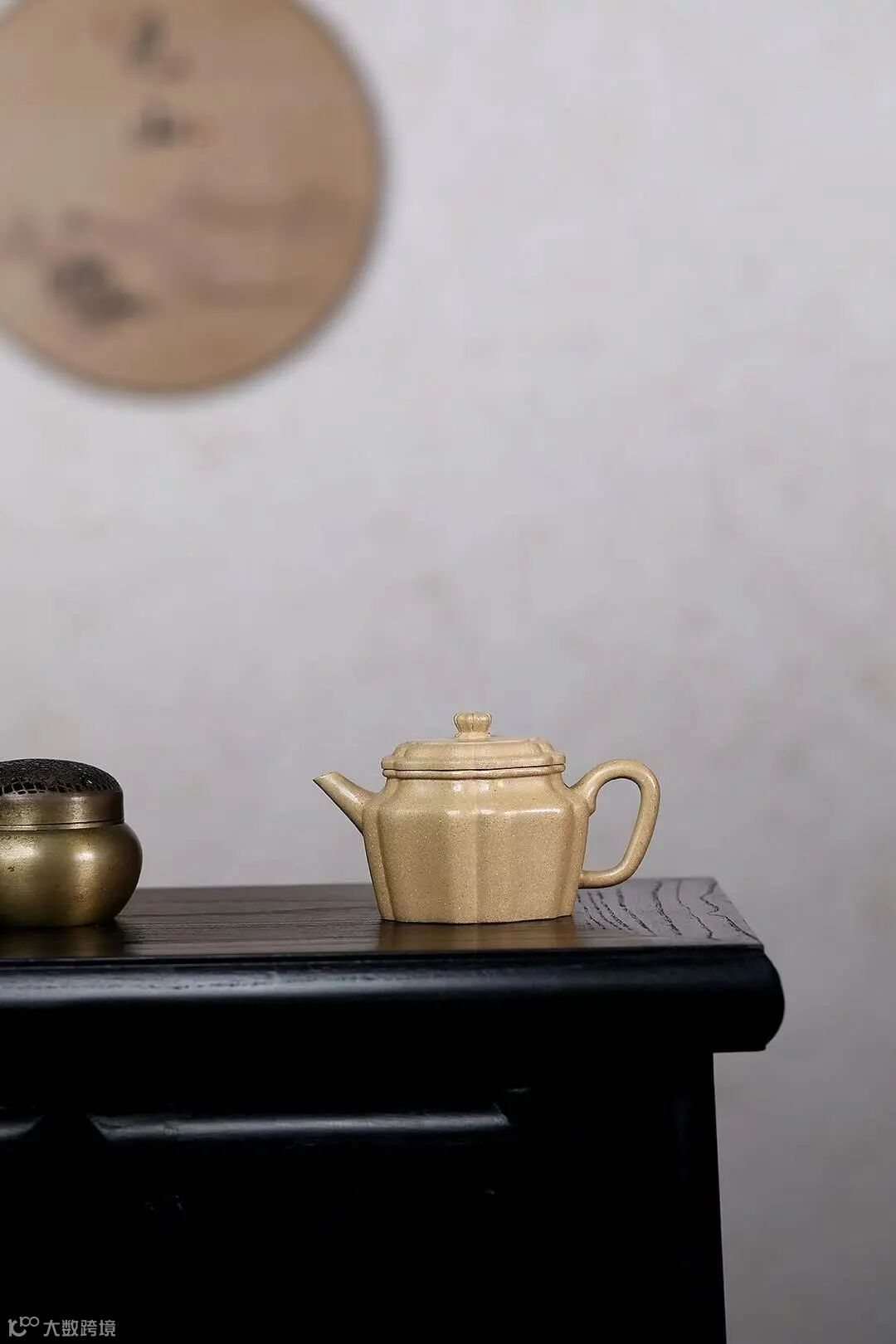 此壶形体扁圆,底部圆韵而丰满,肩有圆棱,口与肩平滑舒展,盖边饰反弧线,祥云钮。腹肩口产生曲折刚劲的张力。壶盖表面采用堆塑的手法,将祥云堆塑在壶盖之上。嘴微曲,大把向外拉出,嘴侧肩与把侧形成一条气贯全壶的流线,相互呼应,生动而自然。整个壶质朴大气。(附证书或出版)