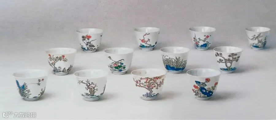 清康熙 五彩花神杯