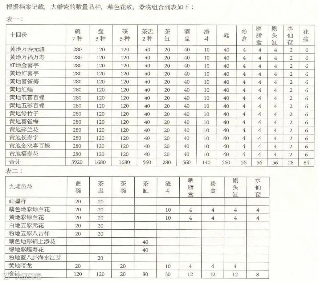 清代《国朝宫史》《钦定宫中现行则例》均对后宫皇太后、皇后、皇贵妃、贵妃、妃、嫔、贵人、常在等不同等级后妃的日常供给和宫室器皿作了详细的规定,即所谓“宫分”和“铺宫”。如里外黄色瓷器,就只限黄太后、皇后使用。铺宫制度本是封建礼教的一种具体体现,具有彰显后妃等级、维护后宫秩序的作用。