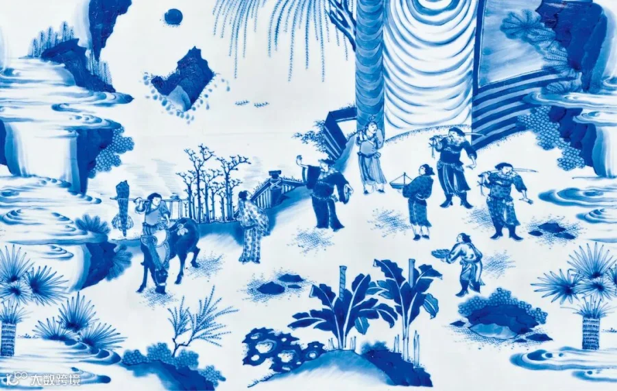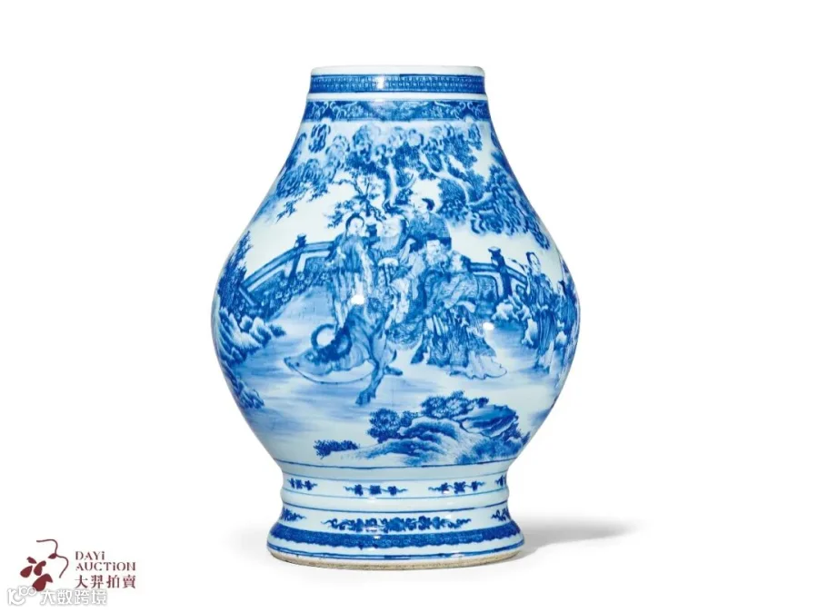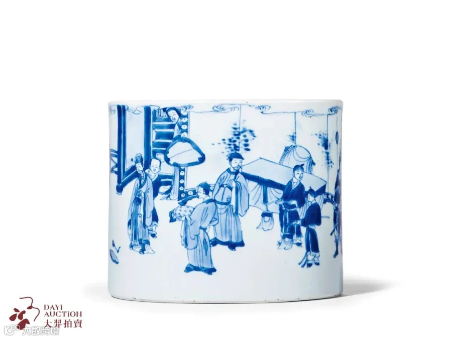 拍品总体上造型挺拔,胎釉精良,布局疏密有致,青花层次分明,绘画娴熟流畅,人物众多,相互呼应,神情生动,文气十足。