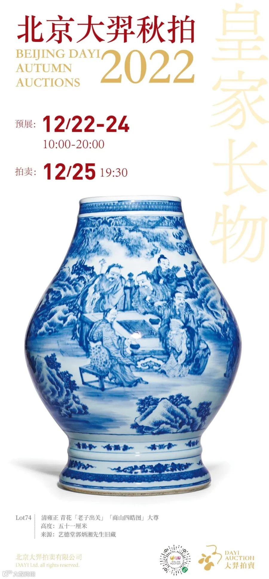 微信小程序【羿趣 YIQU】或快手【北京大羿拍卖】将全程直播明晚的拍卖,足不出户,感受拍卖氛围。除此之外,如在收到本次「无瑕」拍品后,如遇收货后实物与拍品品相描述不符,请在签收24小时内与北京大羿拍卖的工作人员联系,我们会第一时间为您提供满意的解决方案。