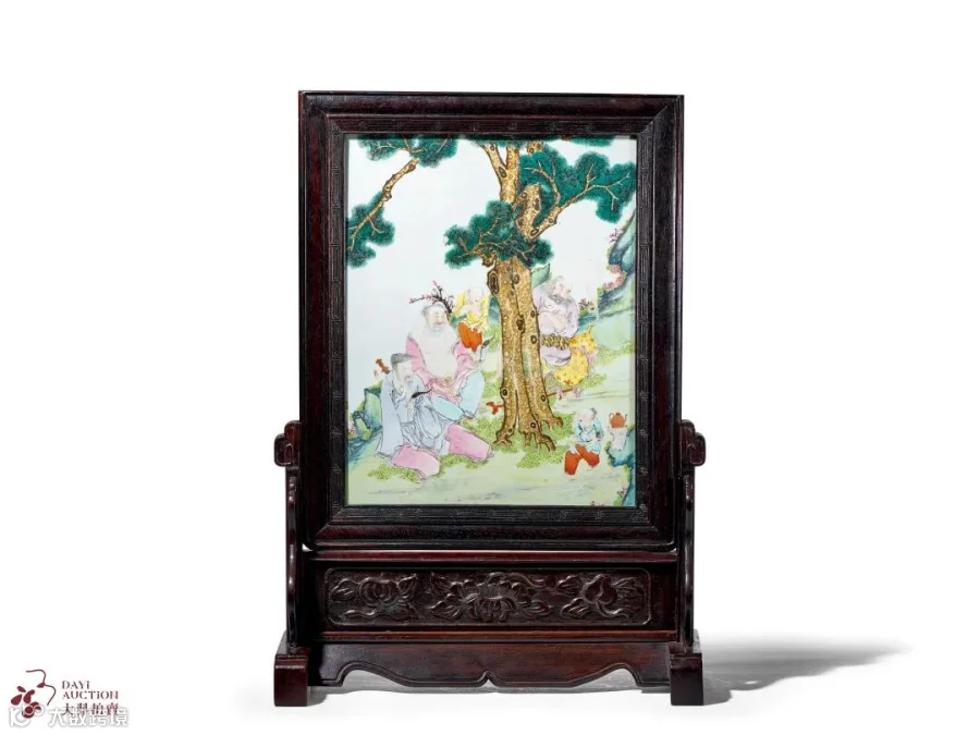 粉彩神仙待茗图插屏
