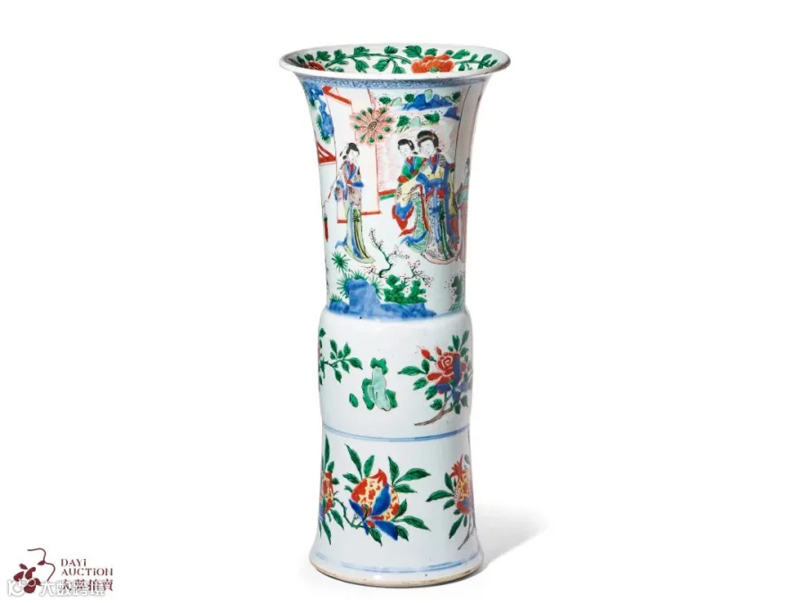 果不其然,腊日(腊八节)凌晨,名贵花种遍布上苑,一夜之间全部绽放。武皇在群臣簇拥下来到了上苑,在看到苑里百花盛开后,群臣们个个惊诧万分,无一不为之折服。那些图谋不轨的臣子,认为上天也偏向武皇,于是不敢轻举妄动了。唐代计有功《唐诗纪事》有述:“天授二年腊,卿相欲诈花发,请幸上苑,有所谋也。许之,寻疑有异图,乃遣使宣诏云云。于是凌晨名花布苑,群臣咸服其异。”女皇初登大宝之位,需要树立权威,方能驾驭天下。此一事件足见武则天的智慧与谋略,一面以醉酒示弱,一面让人连夜布置上苑,以期神化自身,一举震摄群臣,坐稳江山。这件花觚器形硕大,施彩典型,画片精彩,是不可多得的一件清早期陈设大器。