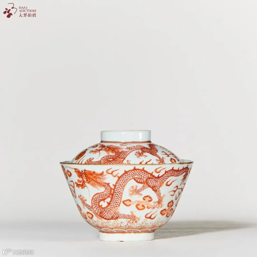 矾红龙纹盖碗