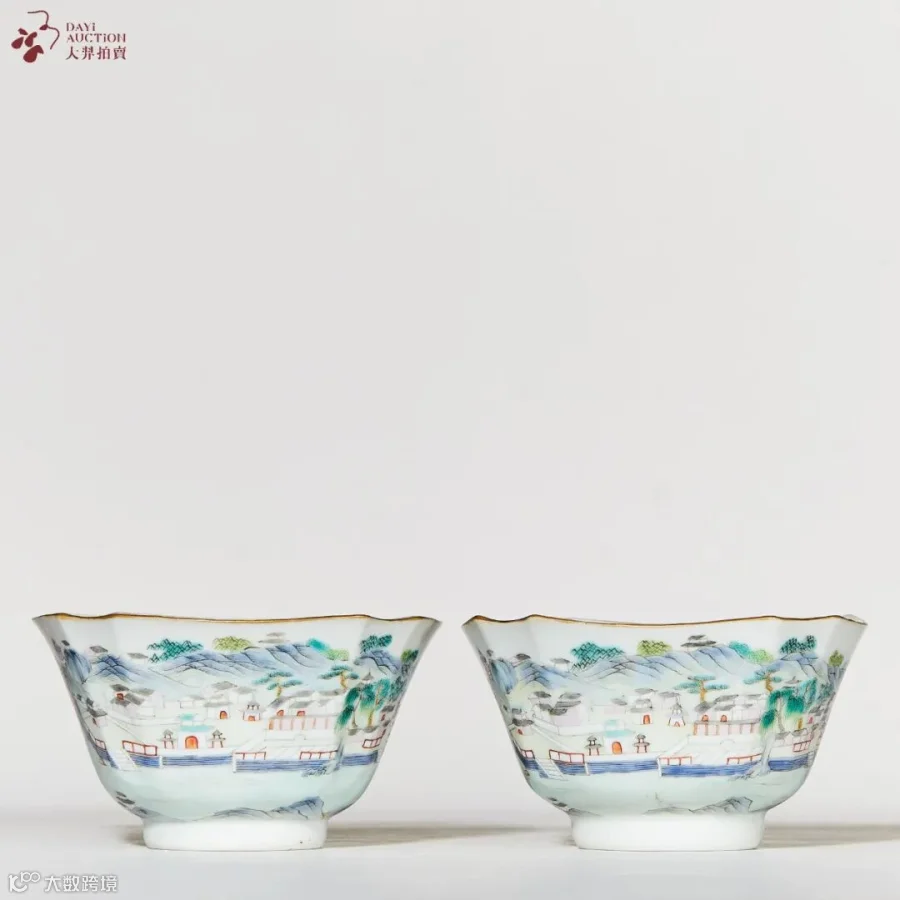粉彩江西十景图窝角茶碗(一对)