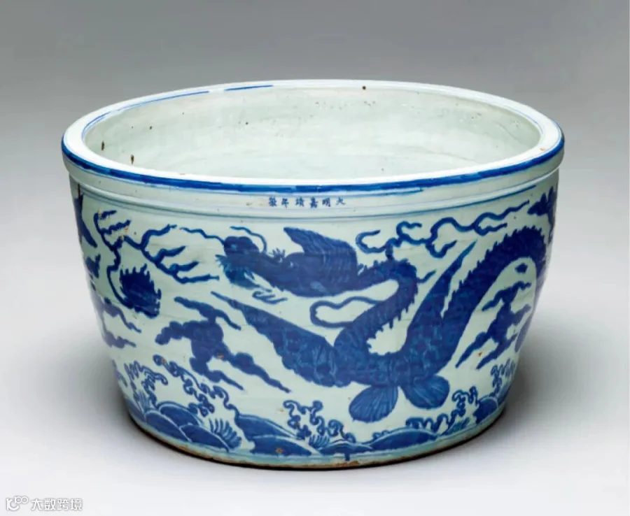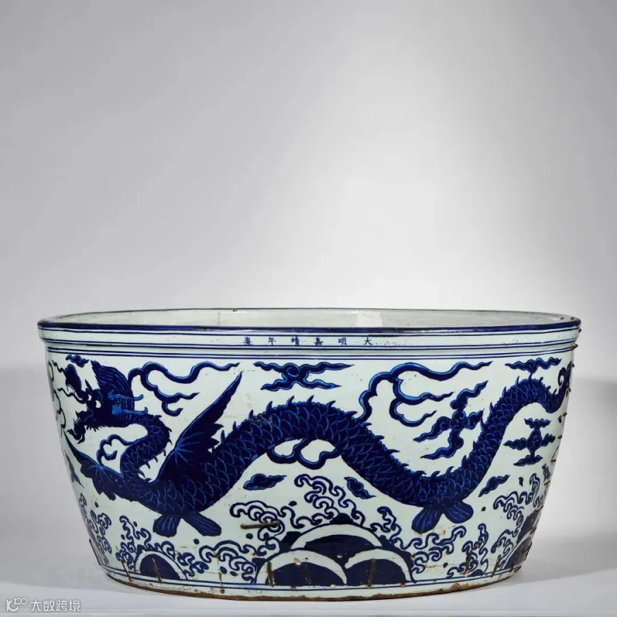 明嘉靖 青花应龙海水纹龙缸
