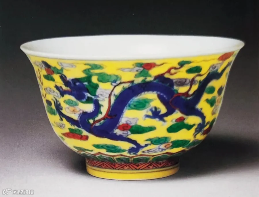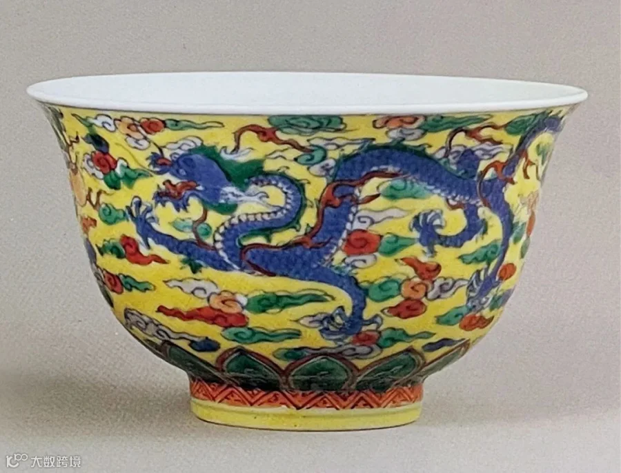 4《清代瓷器赏鉴》,上海科学技术出版社、中华书局(香港)有限公司,1999年,页57,图53故宫博物院藏康熙款黄地五彩云龙纹碗,见故宫博物院网站,文物号:故00147703-4/11