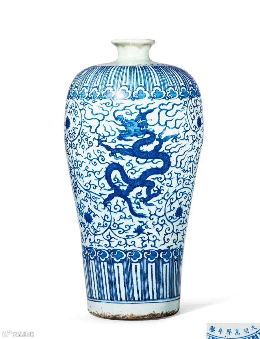 右:明万历 青花穿花龙纹梅瓶(清宫旧藏)