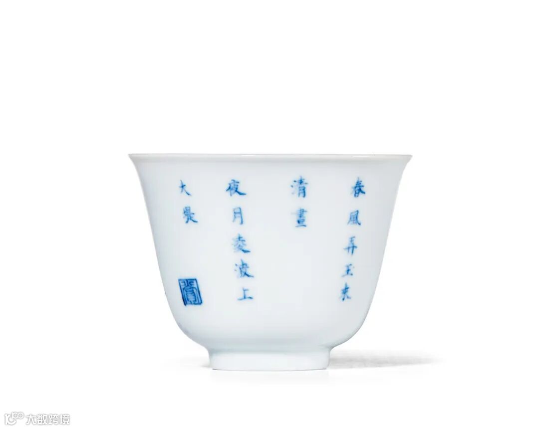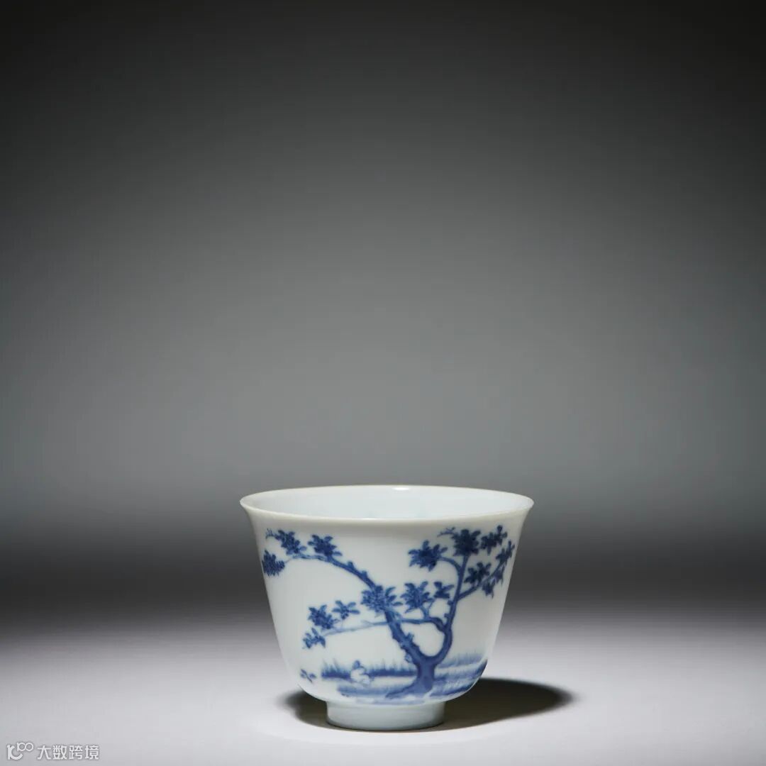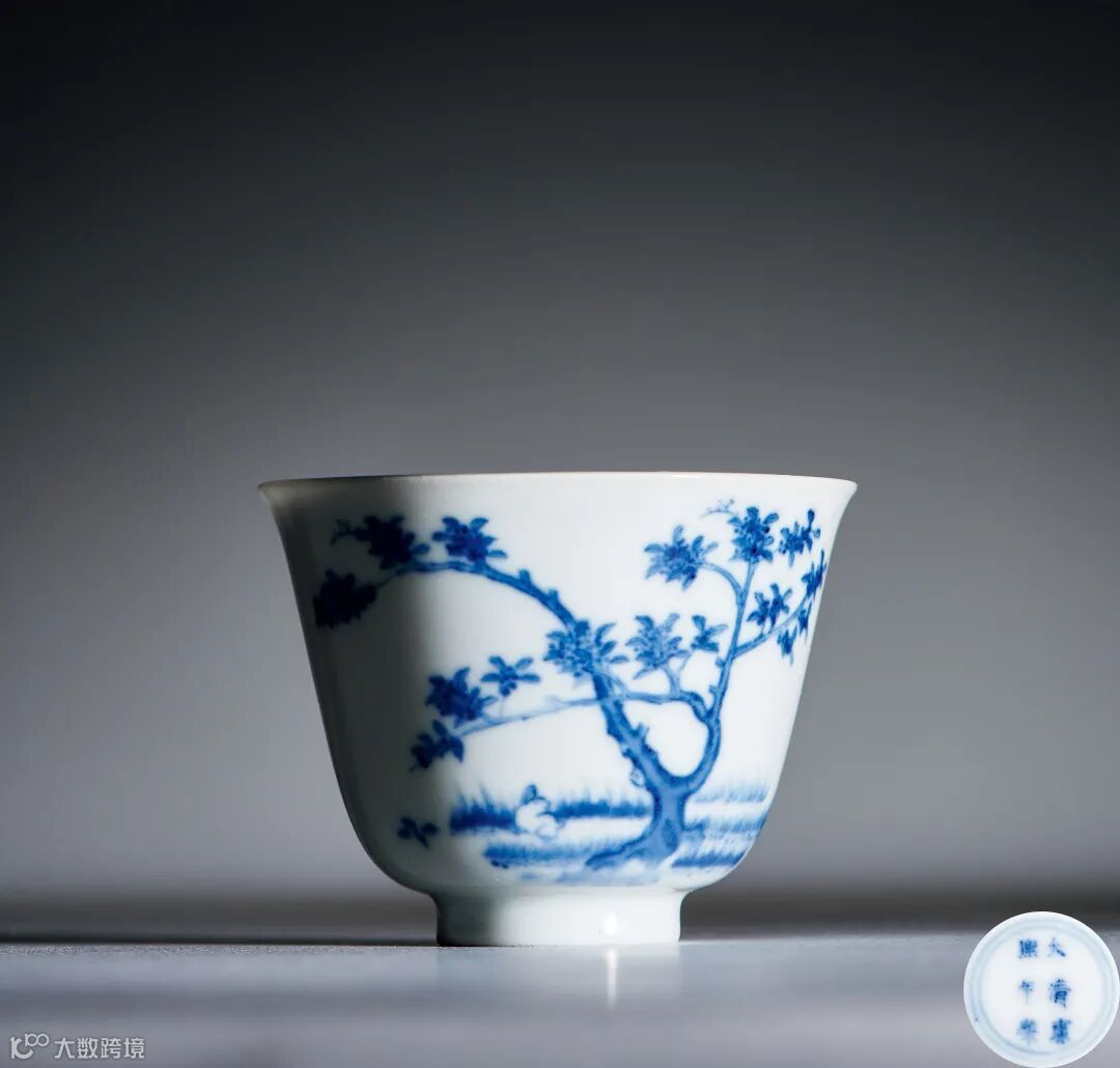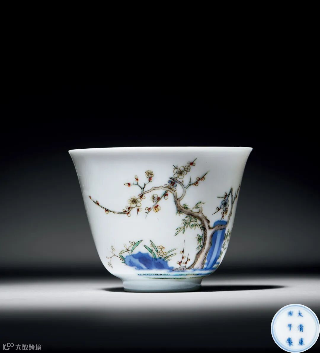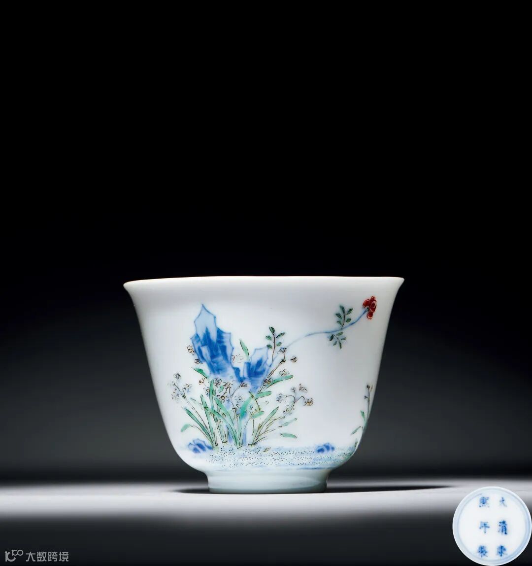 《陶雅》有赞:“康熙十二月花卉酒杯,一杯一花,有青花、有五彩,质地甚薄,铢两自轻。……若欲凑合十二月之花,诚戛戛乎其难。”当时“已而成对,或得四枚、六枚者,亦颇为难得。近则一枚、二枚且不能辄遇之矣。”