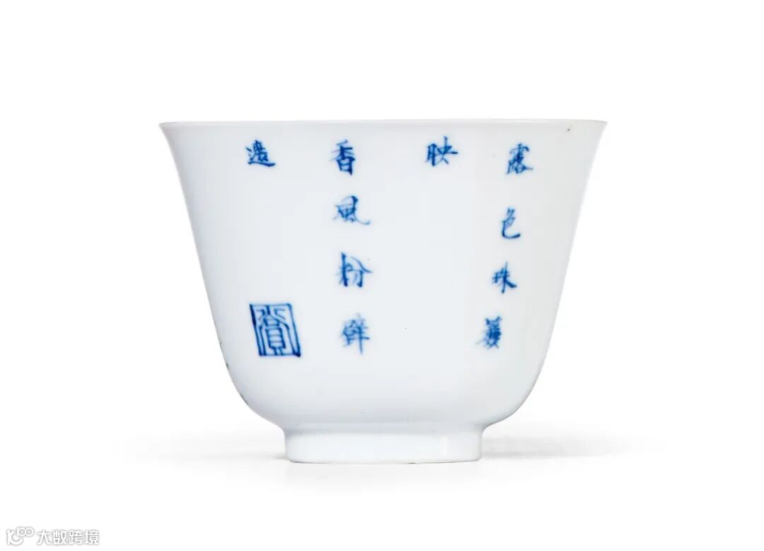 十二月令花神杯打破了器物组合以对为单位的传统设计观念,而依月令之数为一套,纹样装饰更见佳妙,取十二月令花神为之,配列赞赋,求诗印画三者之融合,彰显了康熙盛世时期帝王的独特品味。花神杯的烧制极其困难,成品率极低,故历代收藏大家皆竭尽全力零星搜集,望之成套,风靡海外收藏界至今,堪称旷世奇珍。