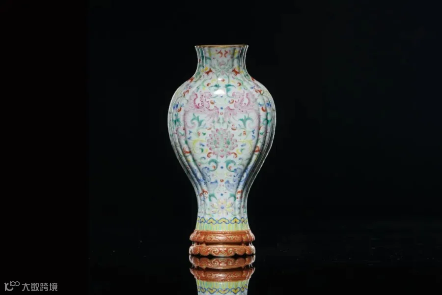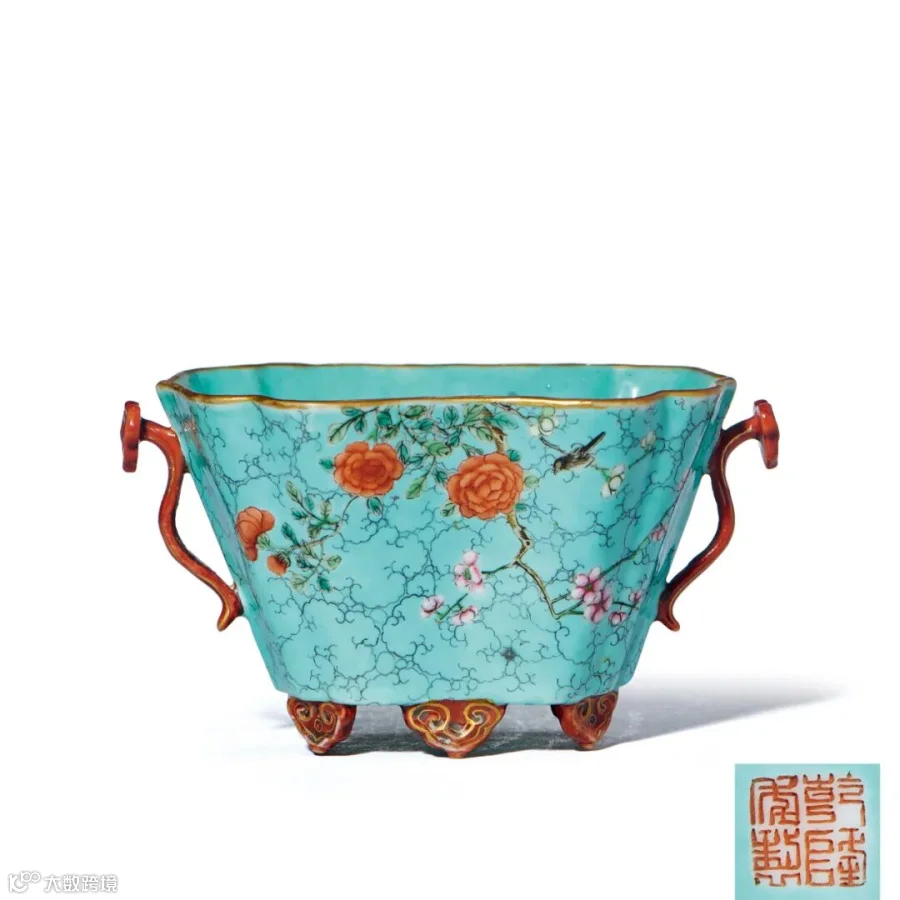 配色娇柔清新,笔触细腻,图案精细秀美,背面亦以花瓣点缀,可见用心,遥想当年瓶上之花与瓶中花卉交相辉映,更觉美不胜收。乾隆御窑是中国瓷史上登峰造极的一页,各种瓷器品种技艺皆穷极工巧。乾隆皇帝又雅好奇玩,故往往有新奇惊艳之作。