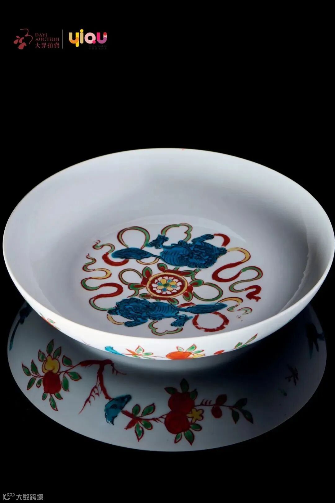 lot850 五彩双狮图盘与lot910 粉彩云蝠纹荸荠瓶,展现了祥瑞纹饰从宗教圣物向民间吉语的嬗变。