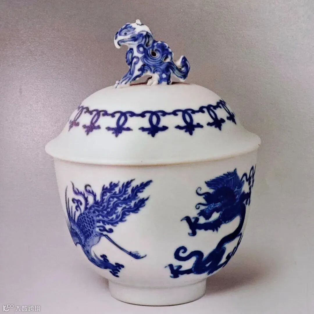 龙凤碗则取法康熙古意,三爪龙纹昂首云间,飞凤翎羽如剑戟森列,其青花发色仿宣德苏麻离青之"铁锈斑",釉面莹润若堆脂,正是唐英"仿古采今"制瓷理念的实证。二器同观,可见清代龙纹已从明代的威仪象征,升华为糅合满汉文化的复合图腾——既承《周易》"飞龙在天"的汉文化正统,又融萨满教中龙神护佑的满族传统。