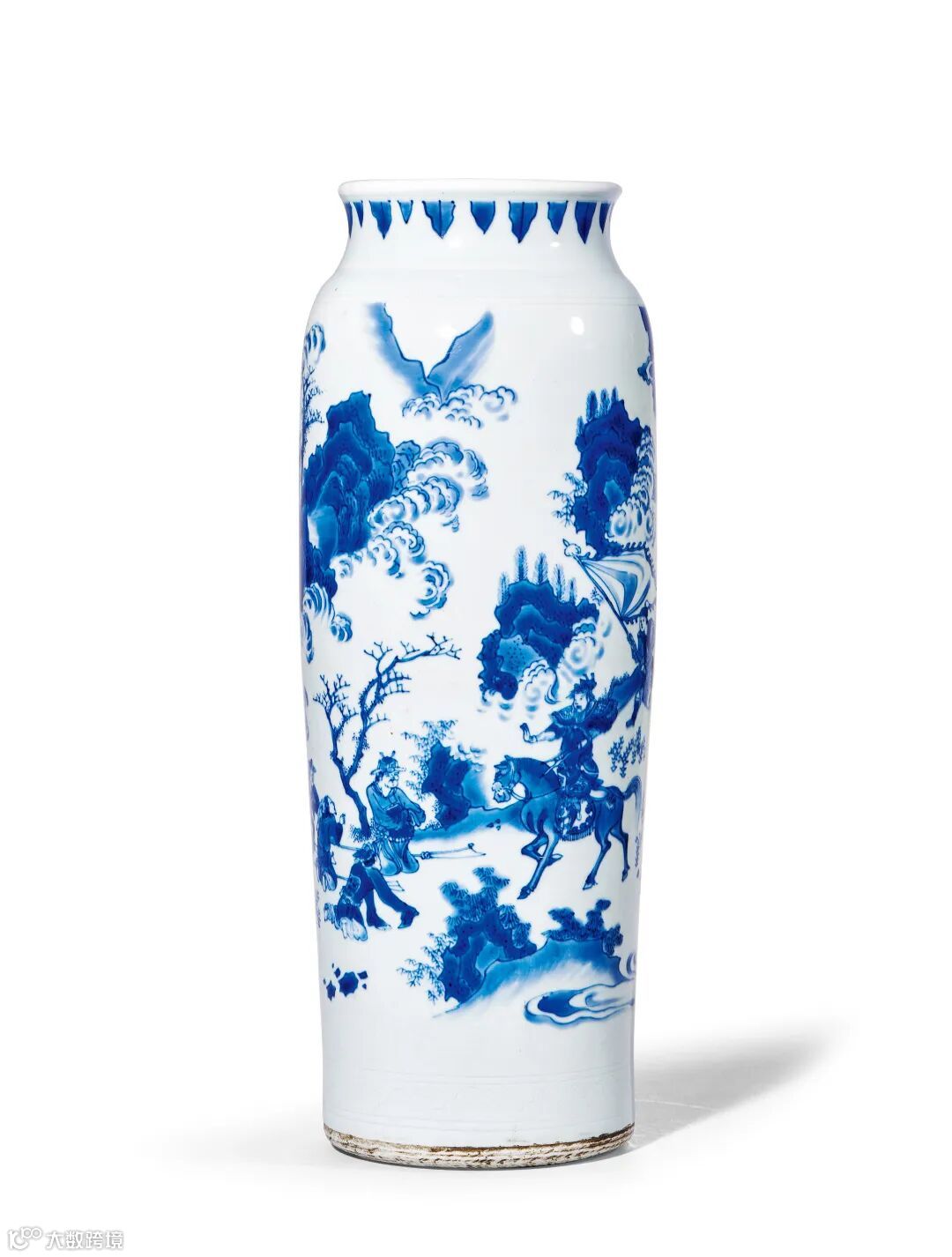 青花「郭子仪单骑见回纥」故事图筒瓶