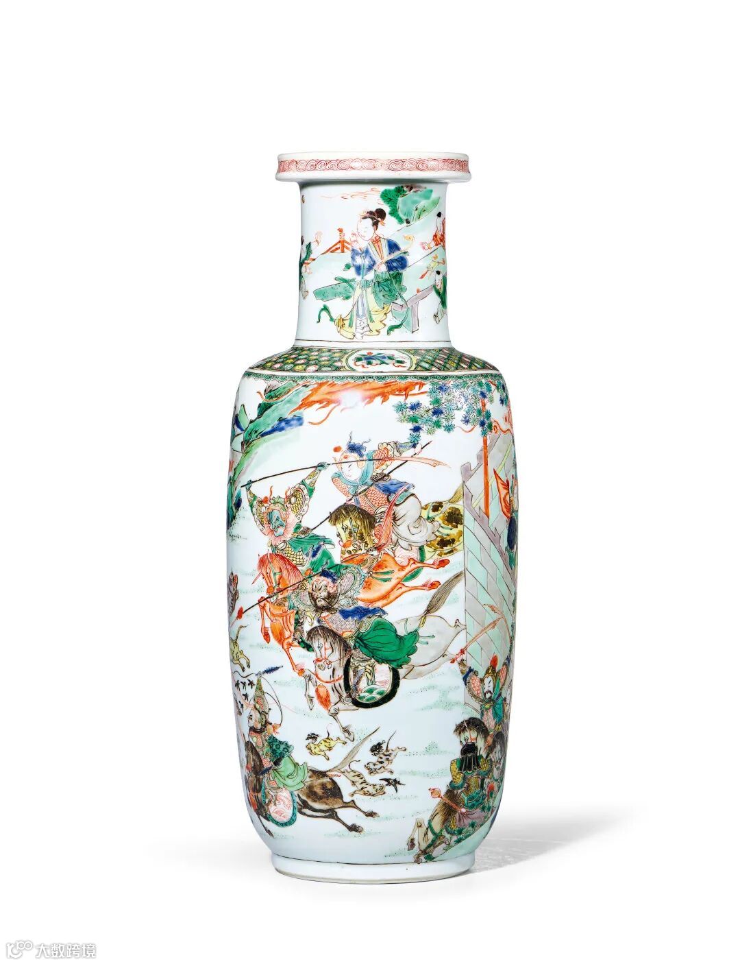五彩「昆阳之战」故事图棒槌瓶
