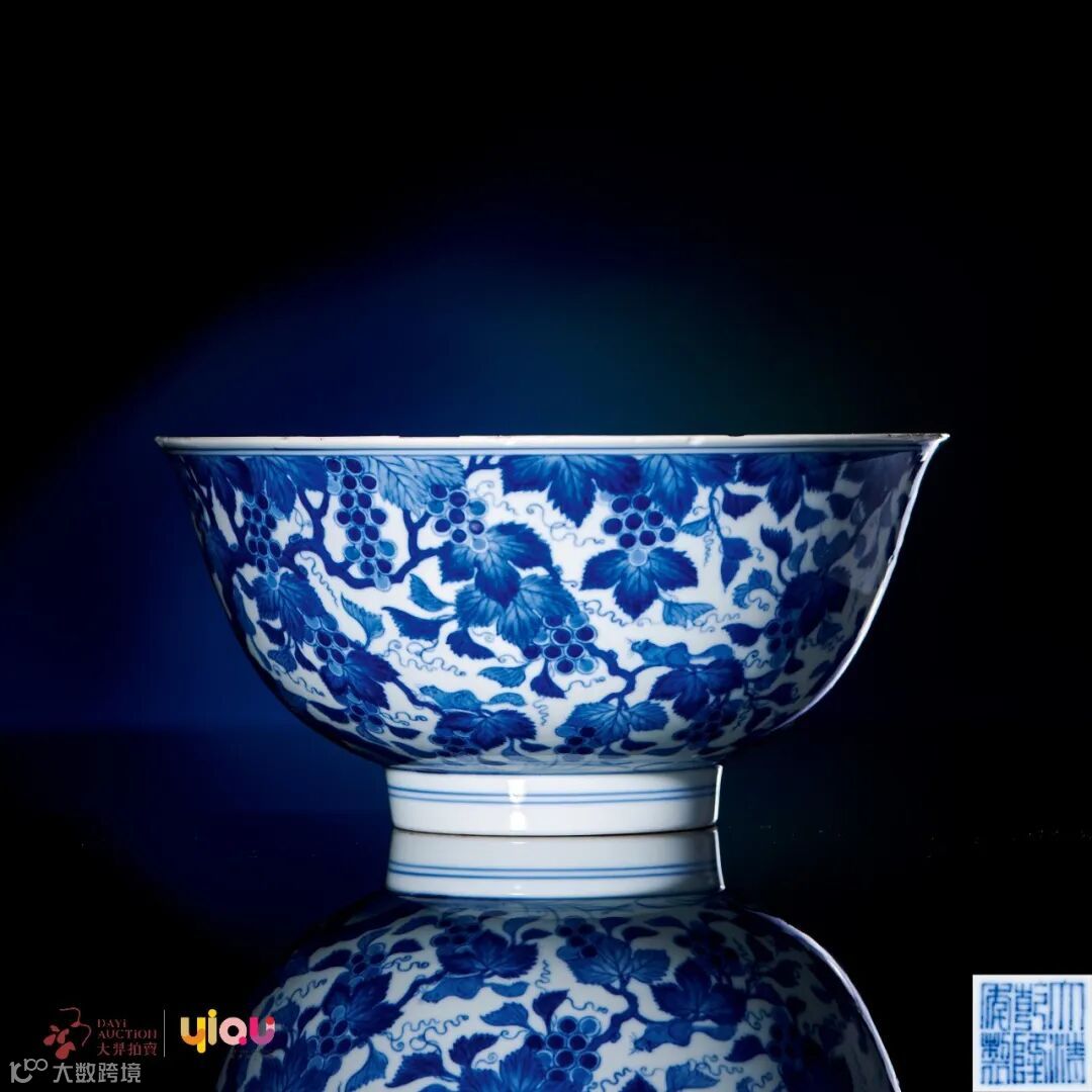 釉面莹润如春水,青花发色苍翠欲滴,恰似晨露未晞的葡萄叶脉。此碗器型端雅,胎骨坚致,底书“大清乾隆年制”六字篆书款,字迹工整如御窑厂清晨的第一缕松烟。拍品与香港中文大学藏品相同,器形规整,釉面莹润光洁,巴黎佳士得2017年6月20日『亚洲艺术』专场中也有类似拍品释出,印证了其跨越时空的审美价值,为乾隆官窑之精细品种。