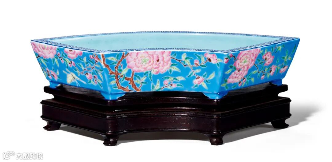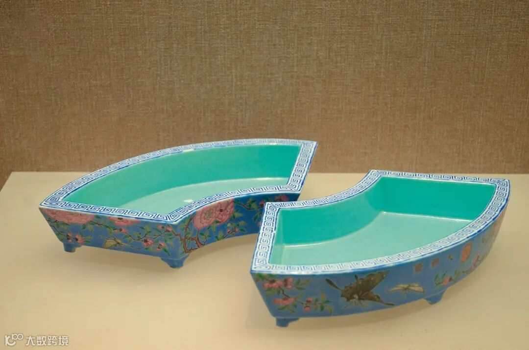 光绪时期,官窑在烧造青花、颜色釉方面全面恢复,远非道光、咸丰、同治三朝所能比拟,在生产技术上甚至直追康乾盛世。这一时期御窑厂瓷器烧制数量逐步增加,在品种上基本囊括了晚清以前所有的传统器型,并且在此基础之上亦有所创新。本场拍卖Lot847清光绪 蓝地粉彩蝶恋花纹扇形水仙盆即为这一时期的创新之作。