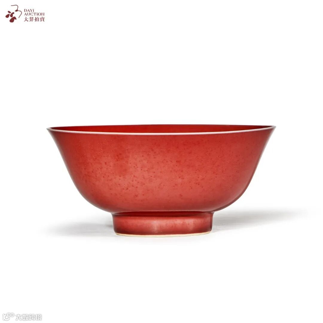本品造型灵秀, 撇口,深鼓腹,圈足。内外施红釉,色泽均匀,沉静莹润,富丽华贵。底落“大清雍正年製”六字双行楷书款。发色妍美的红釉烧成难度较高,康熙朝景德镇御窑厂复烧霁红釉,至雍正时期工艺成熟,色泽艳丽,堪称清代红釉器的典范。 霁红釉亦称“鲜红釉”,是明宣德时创烧的铜红釉品种,因祭红器作祭祀郊坛之用故名。有清一代,霁红釉之烧造当以雍正朝为最,尤得雍正皇帝之钟爱。