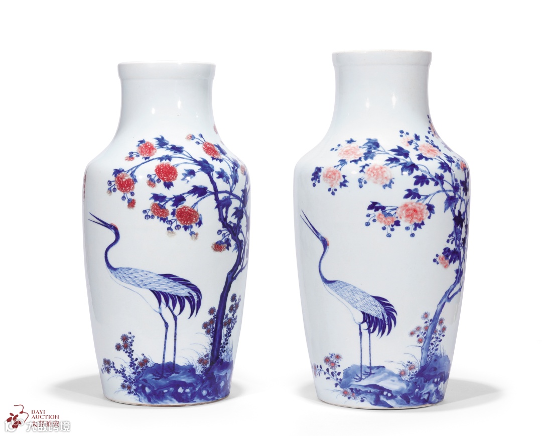 唐英督制青花釉里红一品富贵诗文瓶一对