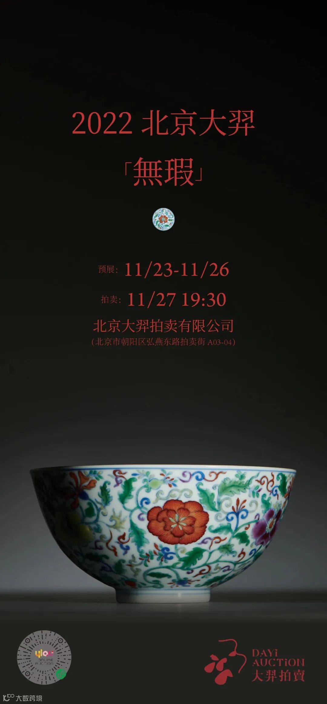 大羿2022年秋季「无瑕」拍卖会即将于11月23日拉开预展帷幕。