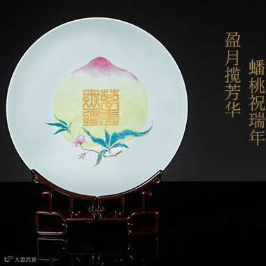 外胭脂红内粉彩万寿无疆纹盘