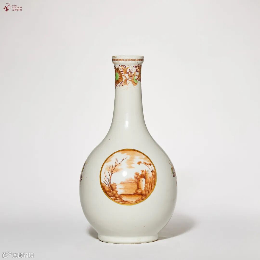 清乾隆 粉彩花卉开窗西洋风景蒜头瓶
