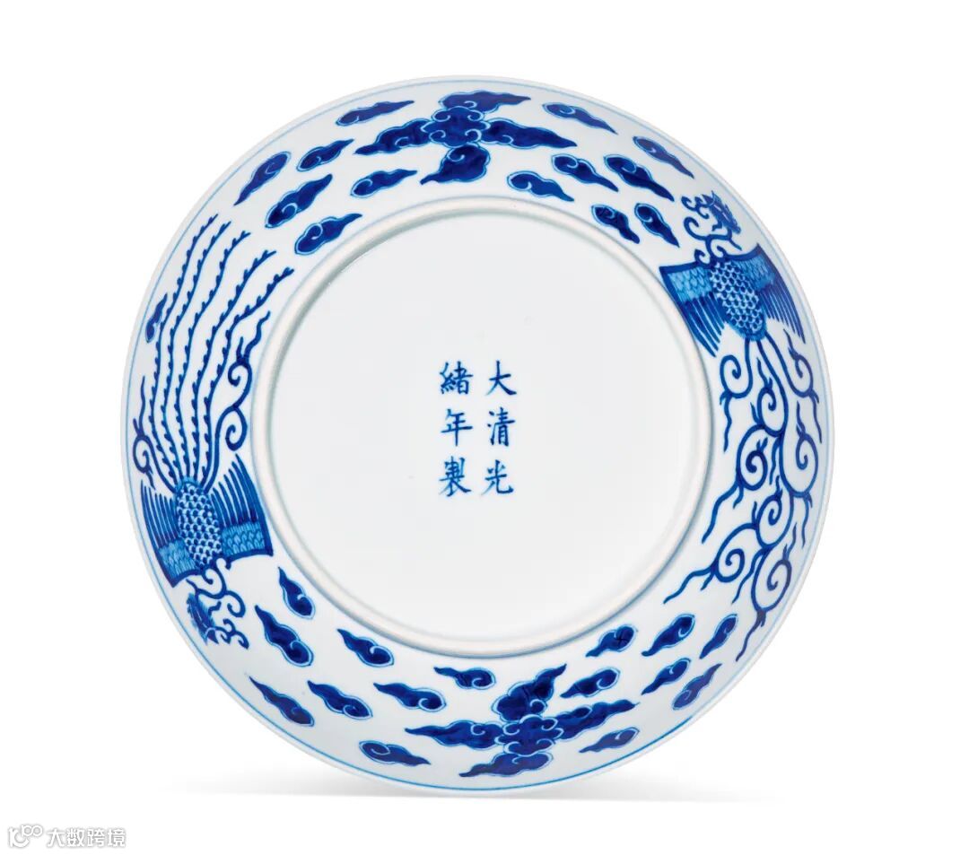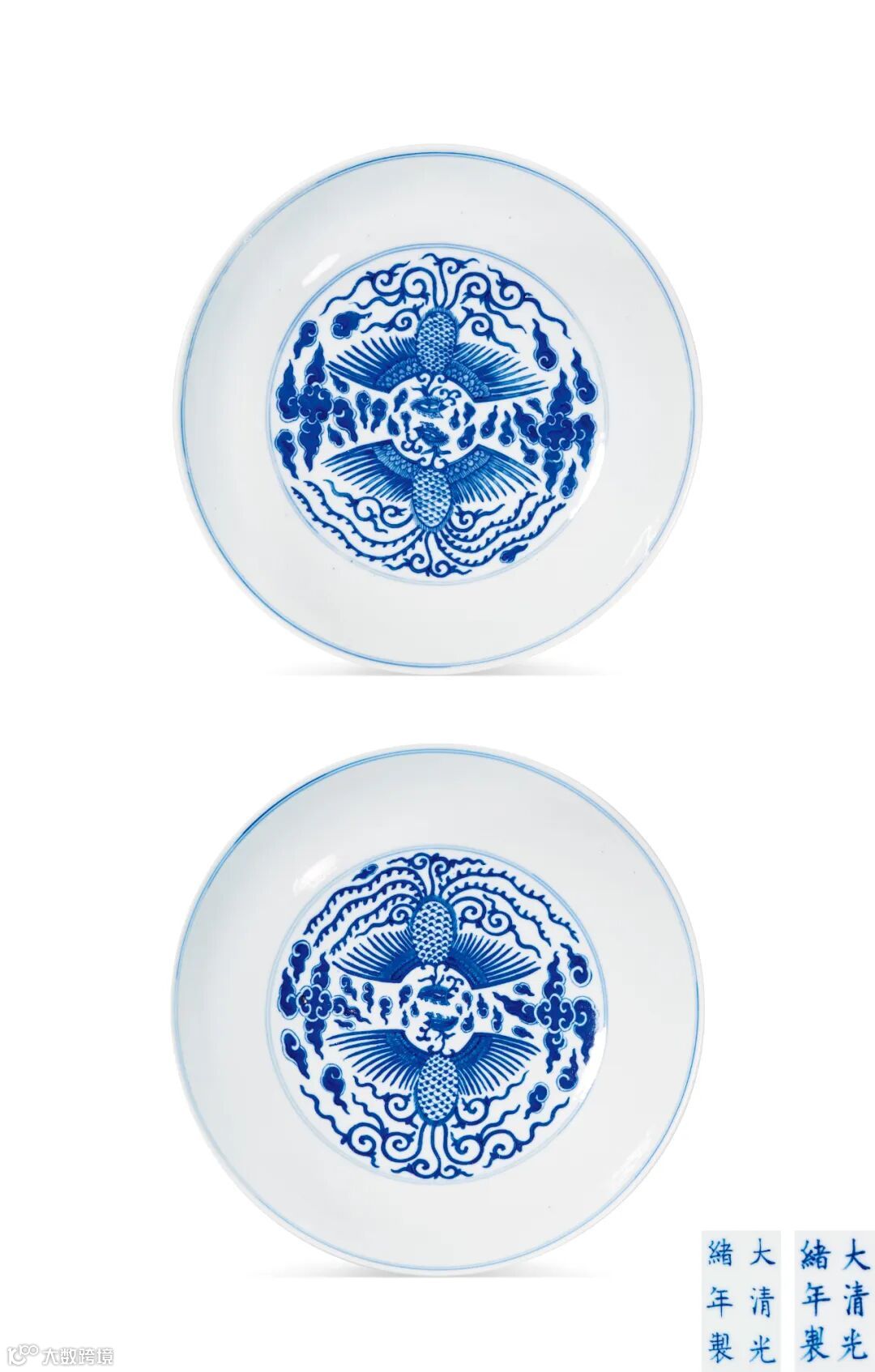 LOT852 清光绪 青花双凤纹盘一对