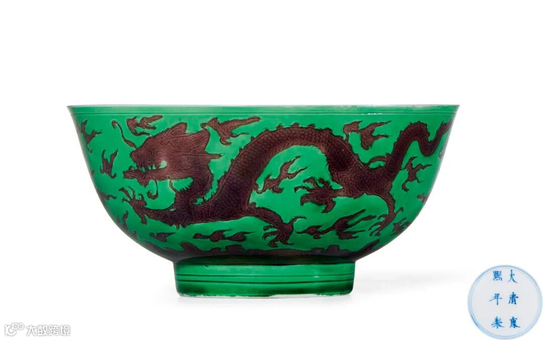 LOT811 清康熙 绿地紫龙纹碗