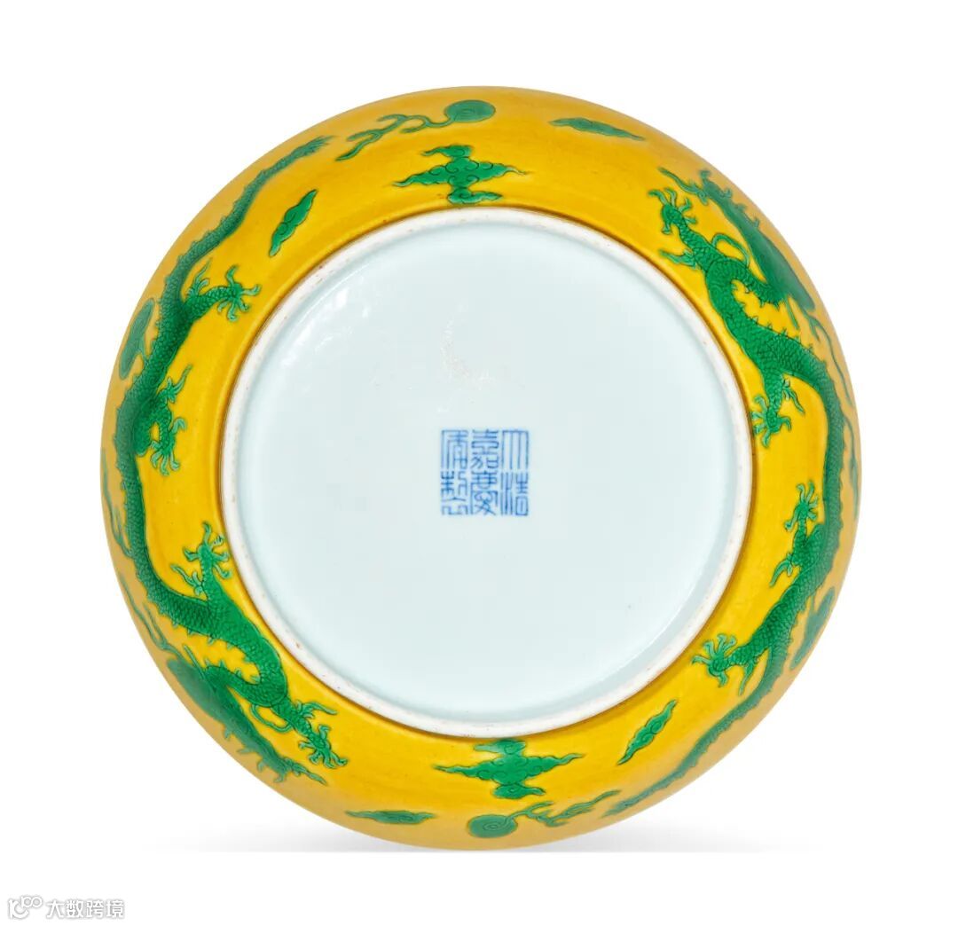 LOT825 清嘉庆 黄地绿龙纹盘