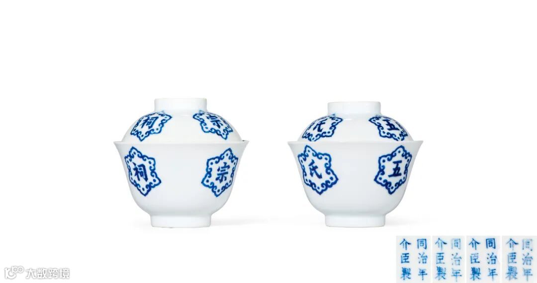 LOT869 清同治 青花『五氏宗祠』盖碗一对